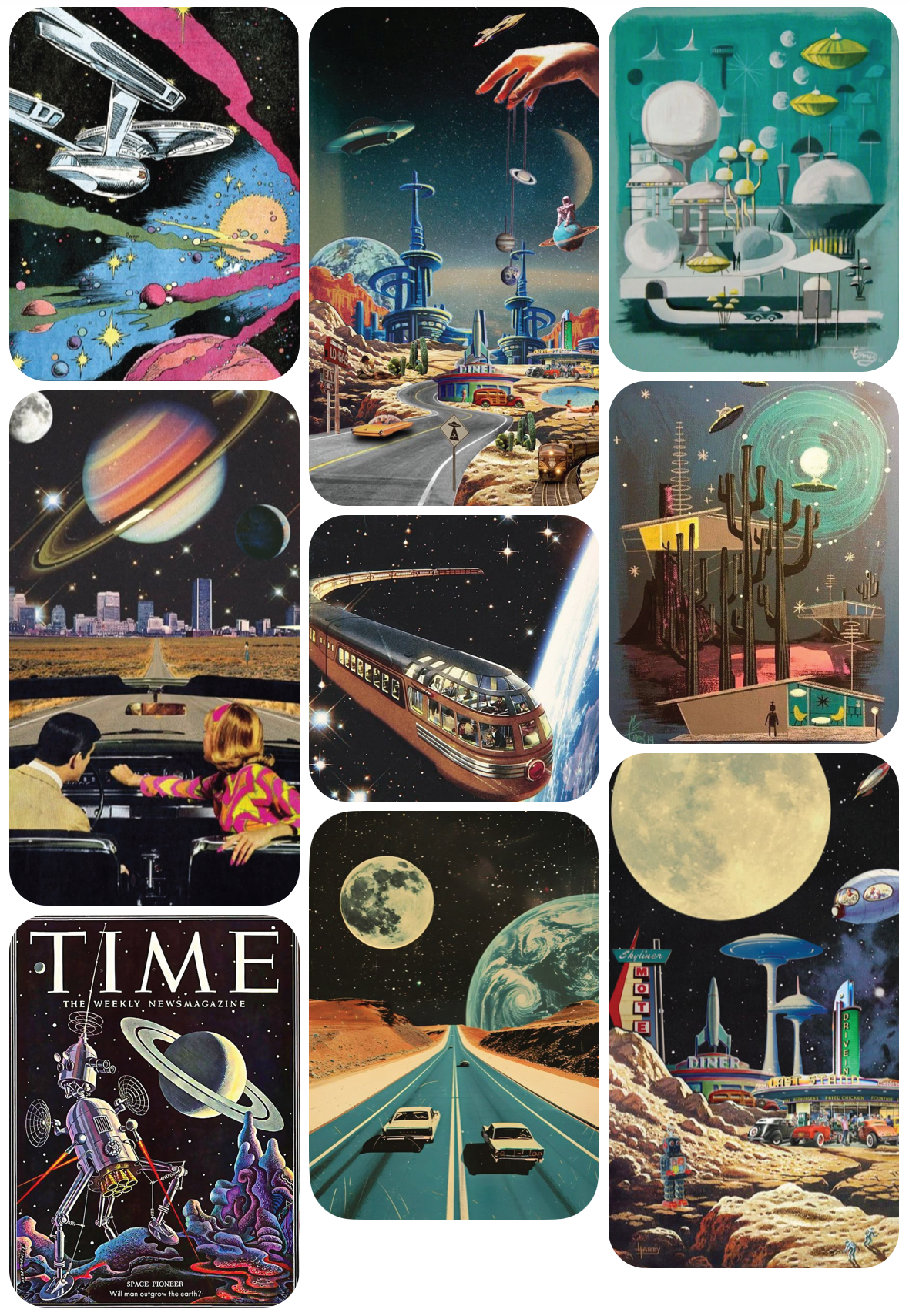 While developing the moodboard for this project, I was especially drawn to the bold optimism of 60s futurism. That inspiration shaped the typographic direction, leading me to explore forms that felt playful yet strong. The final logo is bold, funky, and designed to be instantly memorable. (Photos from Pinterest)