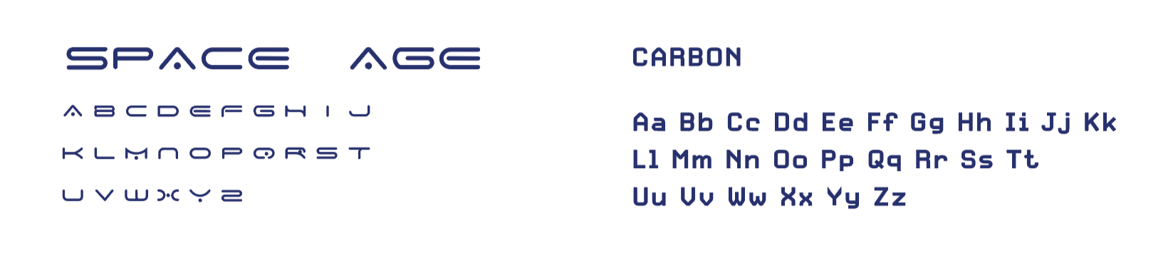 Finding the right type pairing for Space Age was a process. After exploring countless combinations, I landed on a pairing that truly captured the 60s-inspired vision. Space Age brings the retro futurism, while Carbon reintroduces a subtle techno edge. Together, they create a dynamic foundation with plenty of room for creative exploration.
